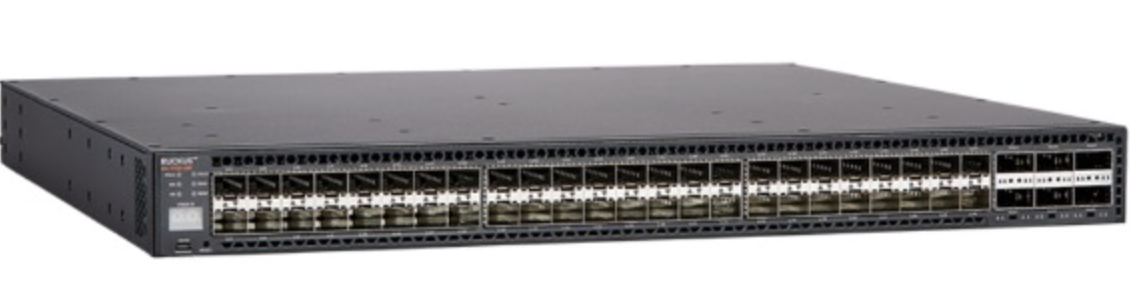 RUCKUS ICX 7150 Switch, 24×10/100/1000 Mbps ports, 2×1 GbE RJ45 uplink-ports, 2×1 GbE SFP and 2×10 GbE SFP+ stacking/uplink-ports upgradable to 4×10 GbE SFP+ with license, basic Layer 3 (static routing and RIP).