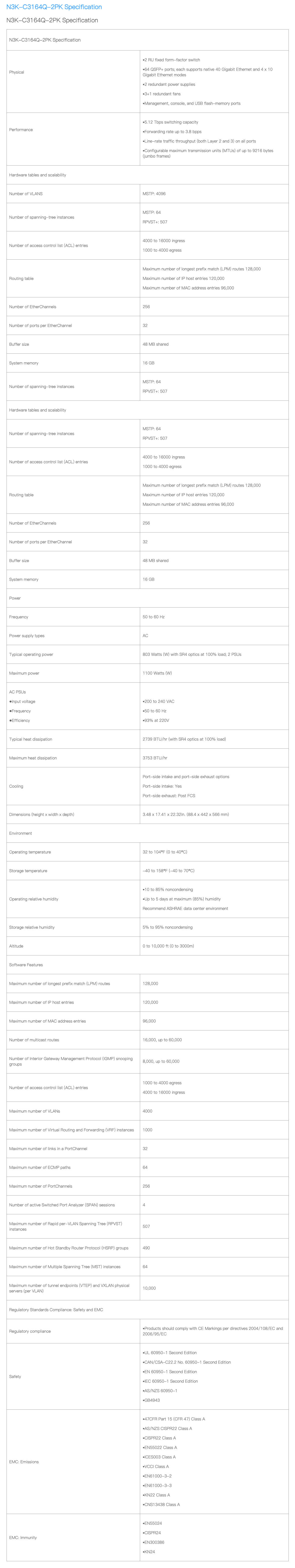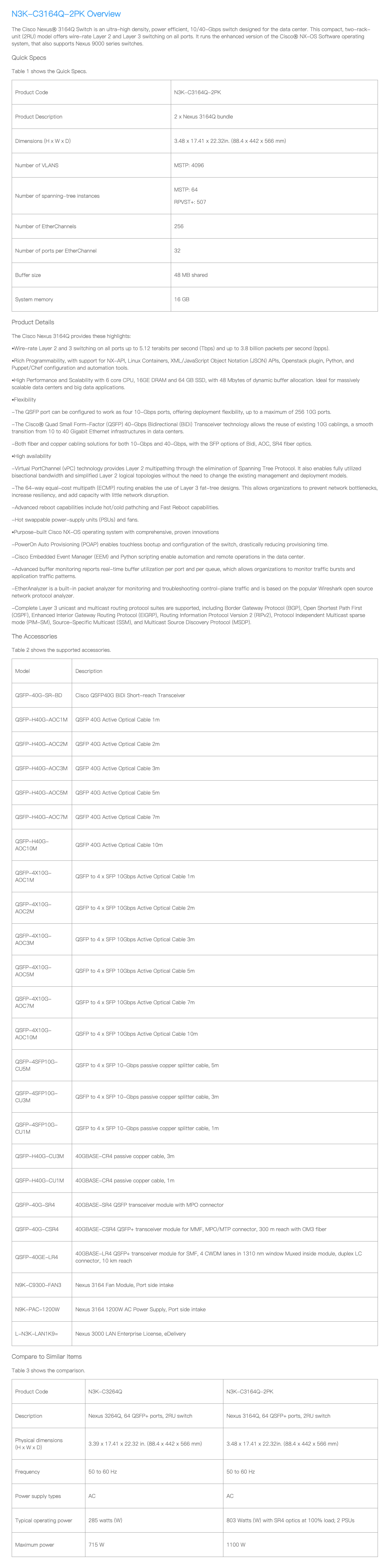 N3K-C3164Q-2PK - Cisco Nexus 3000 Series Specification